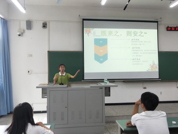 随后,寿雪岑同学以“像我这样优秀的人、像我这样平凡的人”为题向新生进行了分享。她向同学们展示了她大一的学习成绩、干部经历和获奖情况等,并结合就自己的经验分享一些进入大学所应该做的事情。她表示:大家都来到同一个环境,说明你和身边的人现在的起点都是一样的;要“既来之、则安之”,要适应公司、适应公司和适应专业;要具备基本的自理能力和学习能力;要培养兴趣爱好,充实课余生活;大学四年需要有明确的规划,希望学弟学妹们每一段时间都有一个明确的目标。